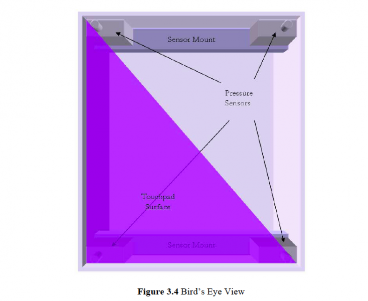 The touchpad is a low cost design utilizing only 4 pressure sensors, but allows for three control parameters: X (frequency), Y (boost/attenuation), Z (Q/bandwidth). I was responsible for the digital signal processing portion of this project, and implemented an all-pass Metria-Regalia filter.