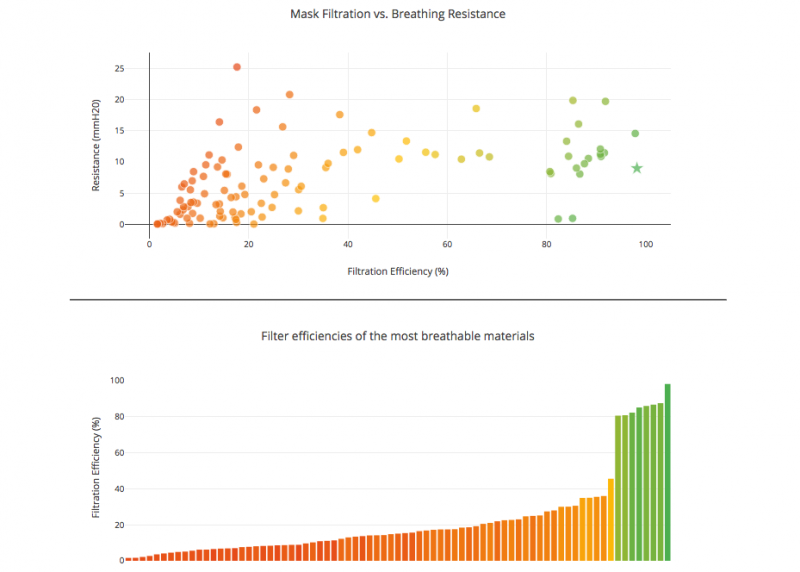MaskFAQ is a website that aims to test the filtration efficiency of homemade mask materials using standard N95 test methodology. Unlike many homemade test setups, MaskFAQ sent samples to get tested by TSI, Inc, -- makers of the TSI 8130 testing machine used to test N95 masks. In addition to sharing information about mask materials, the website aims to answer frequently asked questions about mask usage, mask construction, and what materials to avoid.